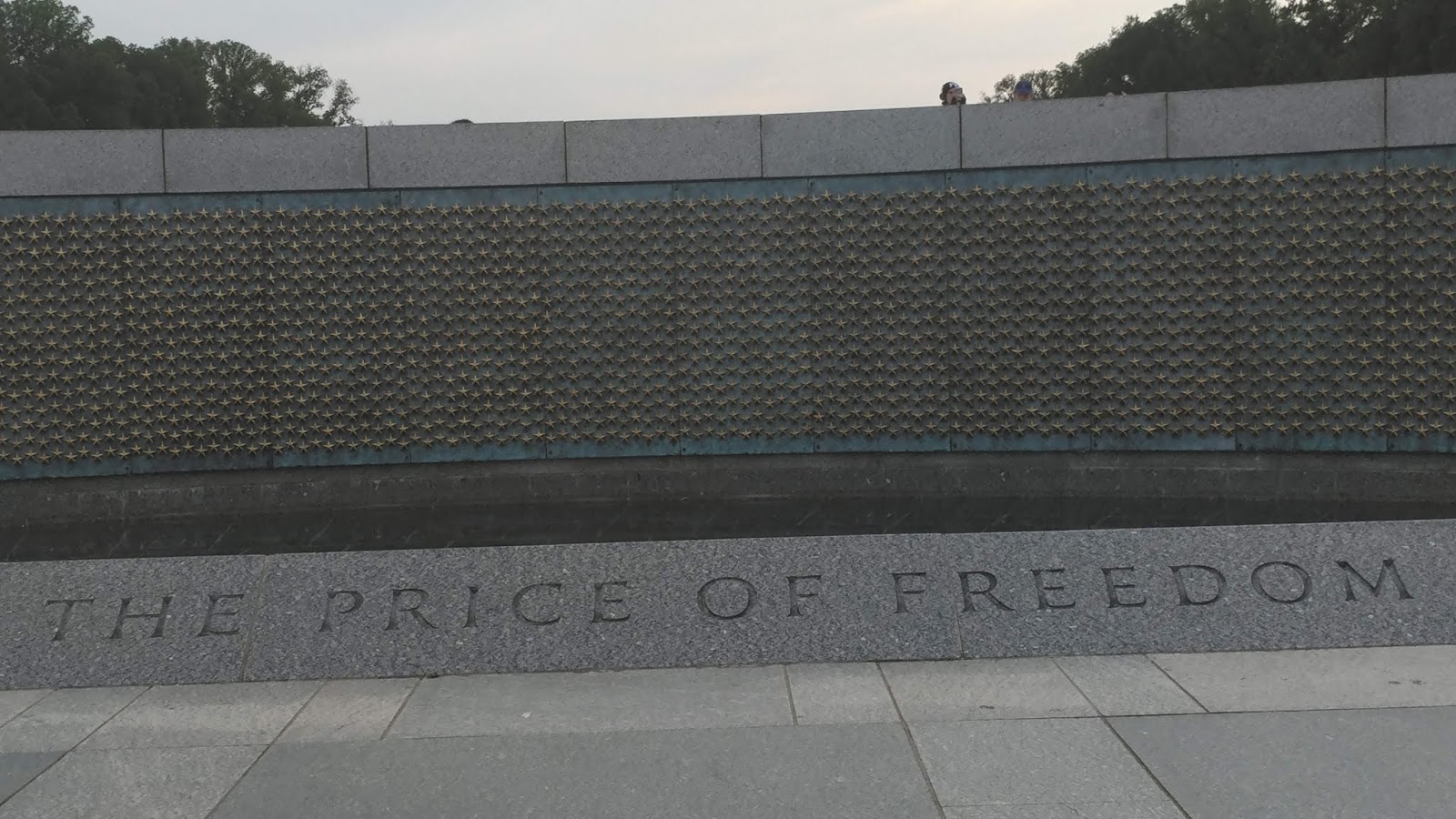 Whether it was standing in the center of the World War 2 Memorial where the lives of each soldier lost in the war are marked by a star with the words emblazoned beneath saying, ‘The Price of Freedom’. Or standing in the midst of the white-washed marble tombstones of Arlington Cemetery stretching across acres, marking the grave sites of our fallen heroes over the centuries.
