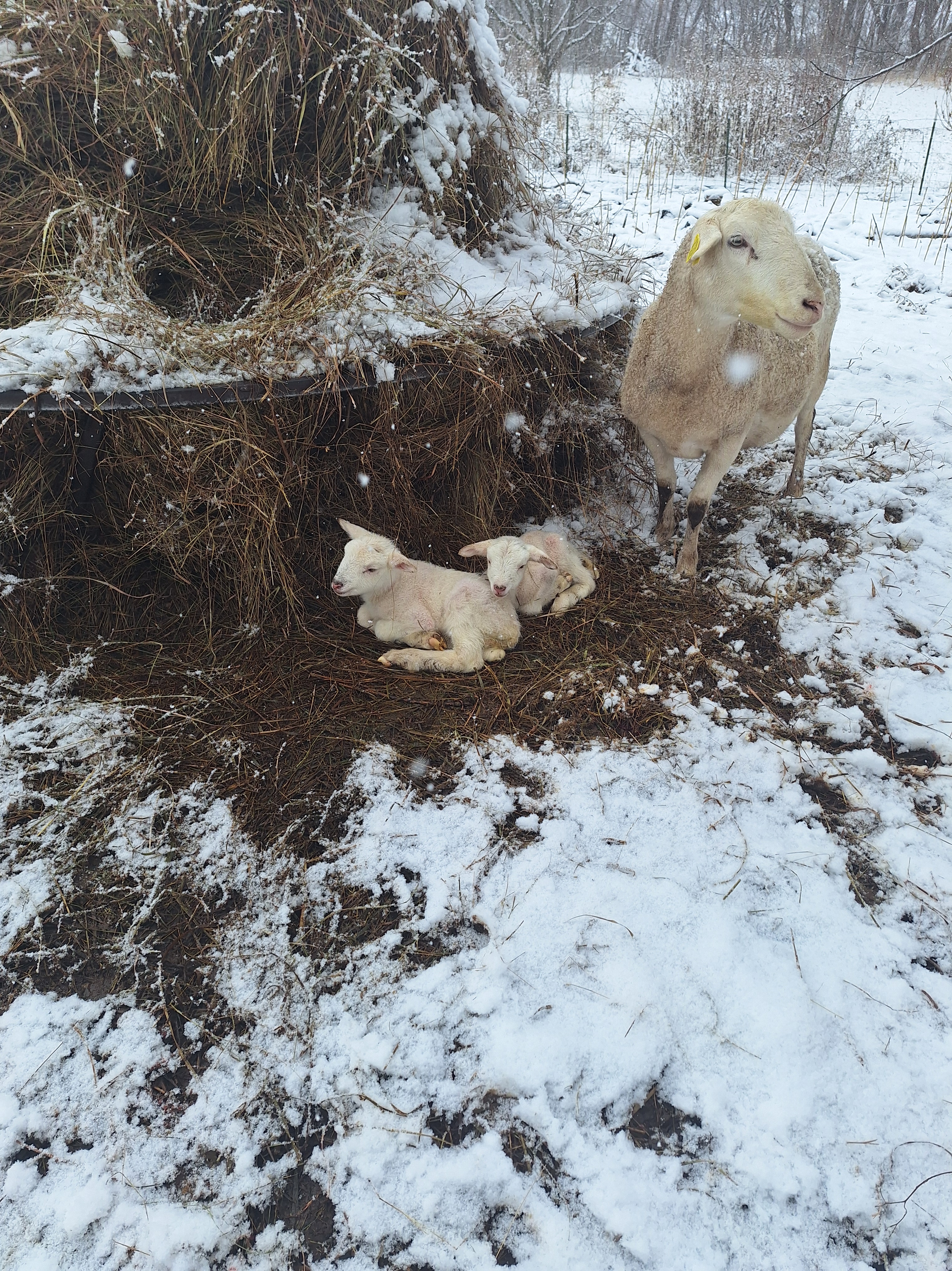 Of course the first few days were nice and calm…then a cold front came through and things got interesting! When I came up that morning and was doing animal checks to find a ewe and her new lambs behind the bale I had a little freak out moment! I called the owner and asked the obvious question, how do I get this ewe to come into the barn with me and the babies?